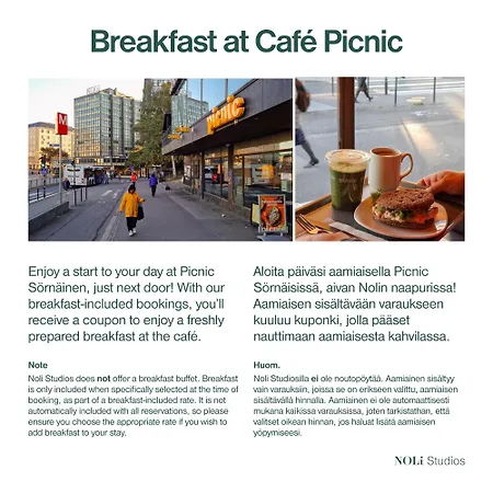 Das Noli Soernaeinen Helsinki bietet den Gästen 19 Zimmer an, die mit Ausstattung zur Kaffee- & Teezubereitung, schallisolierten Fenstern und der Küche sowie mit einer Kaffee-/Teemaschine, einer Gefriertruhe und einem Herd ausgestattet sind. In Badezimmern stehen den Gästen ein Bidet, eine begehbare Dusche und eine getrennte Toilette zur Verfügung.
